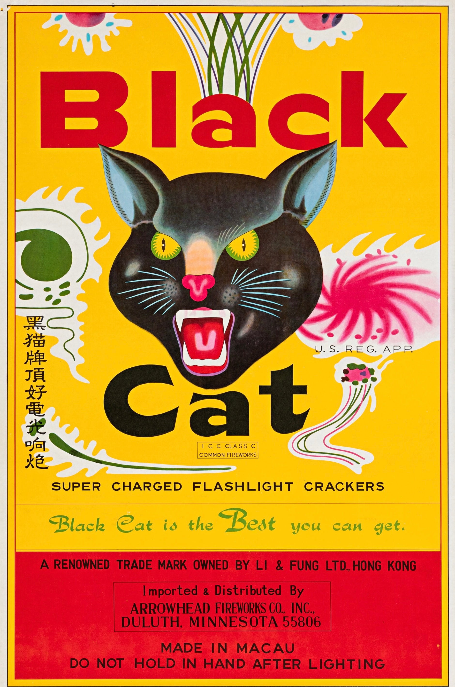 BLACK CAT FIREWORKS – AFFICHE PUBLICITAIRE VINTAGE ANNÉES 1970 – CHAT NOIR – POSTER RÉTRO POP ART – REPRODUCTION – POSTER HUB STUDIO – HQ -