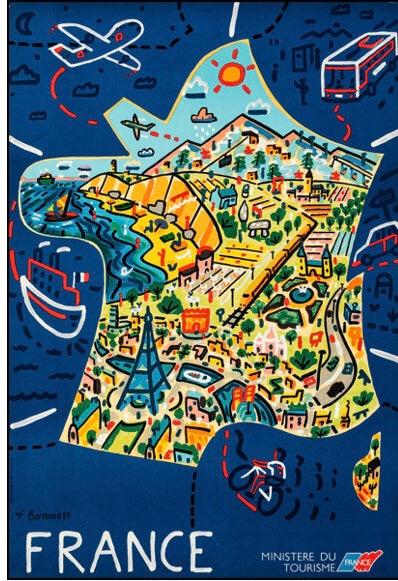 FRANCE | AFFICHE MINISTÈRE DU TOURISME (c.1989) | CARTE ILLUSTRÉE | REPRODUCTION HQ | POSTER HUB -
