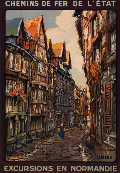 EXCURSIONS EN NORMANDIE – LISIEUX | CHEMINS DE FER DE L’ÉTAT | AFFICHE TOURISTIQUE ANCIENNE | REPRODUCTION HQ | POSTER HUB -