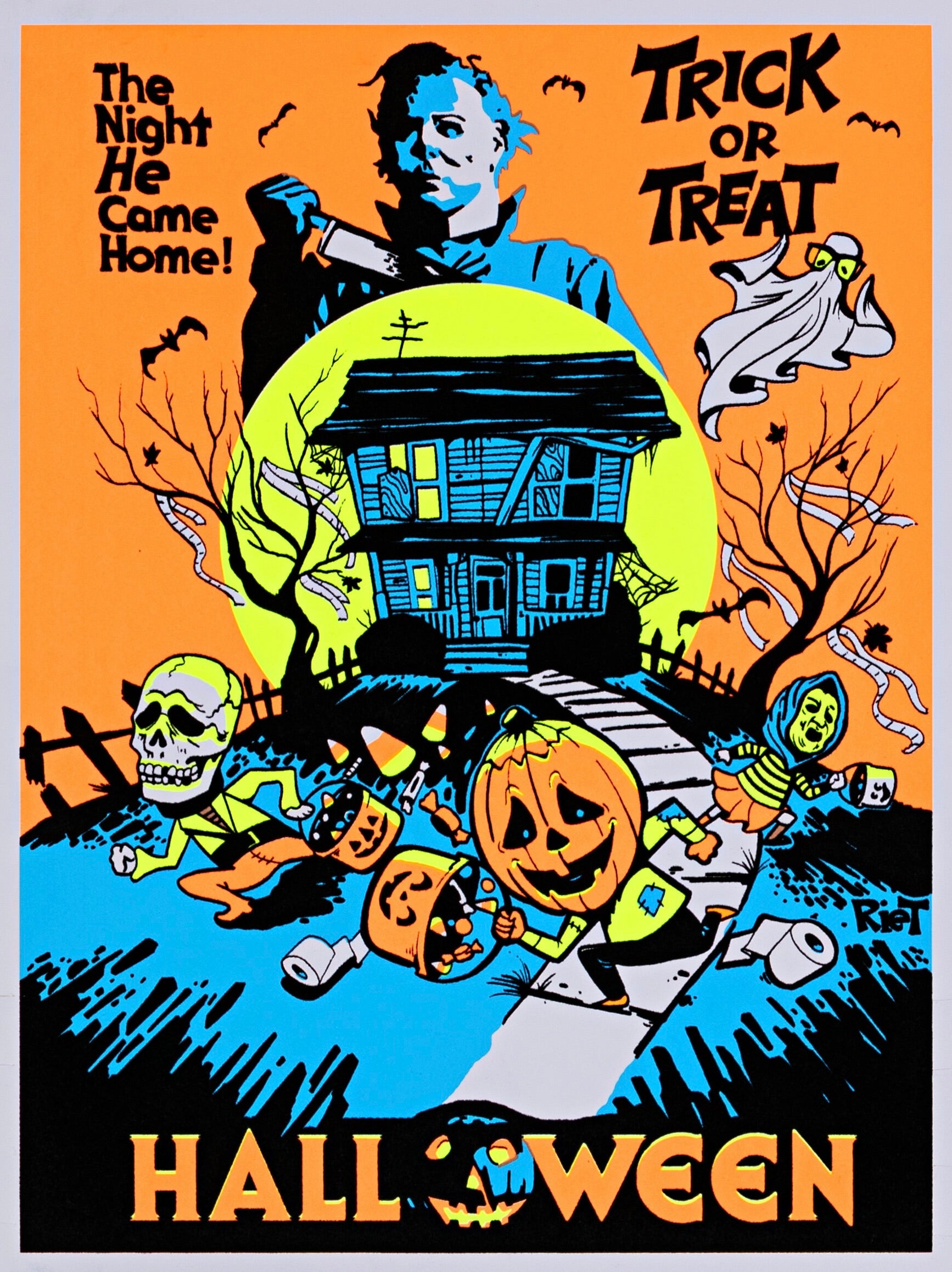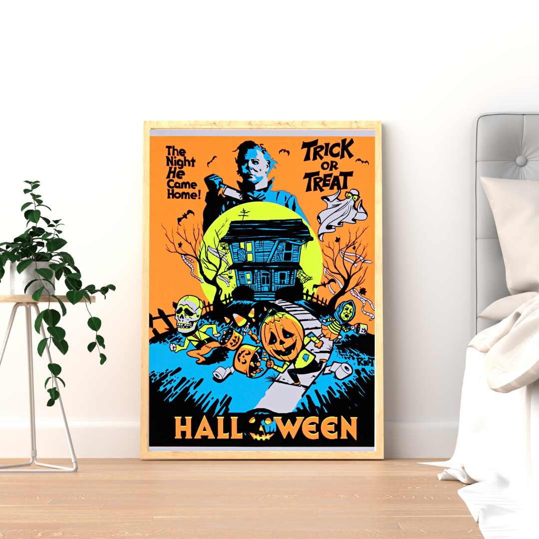HALLOWEEN – FILM JOHN CARPENTER (1978) – JAMIE LEE CURTIS – DONALD PLEASENCE – AFFICHE CINÉMA HORREUR POP ART – REPRODUCTION – POSTER HUB STUDIO – HQ -