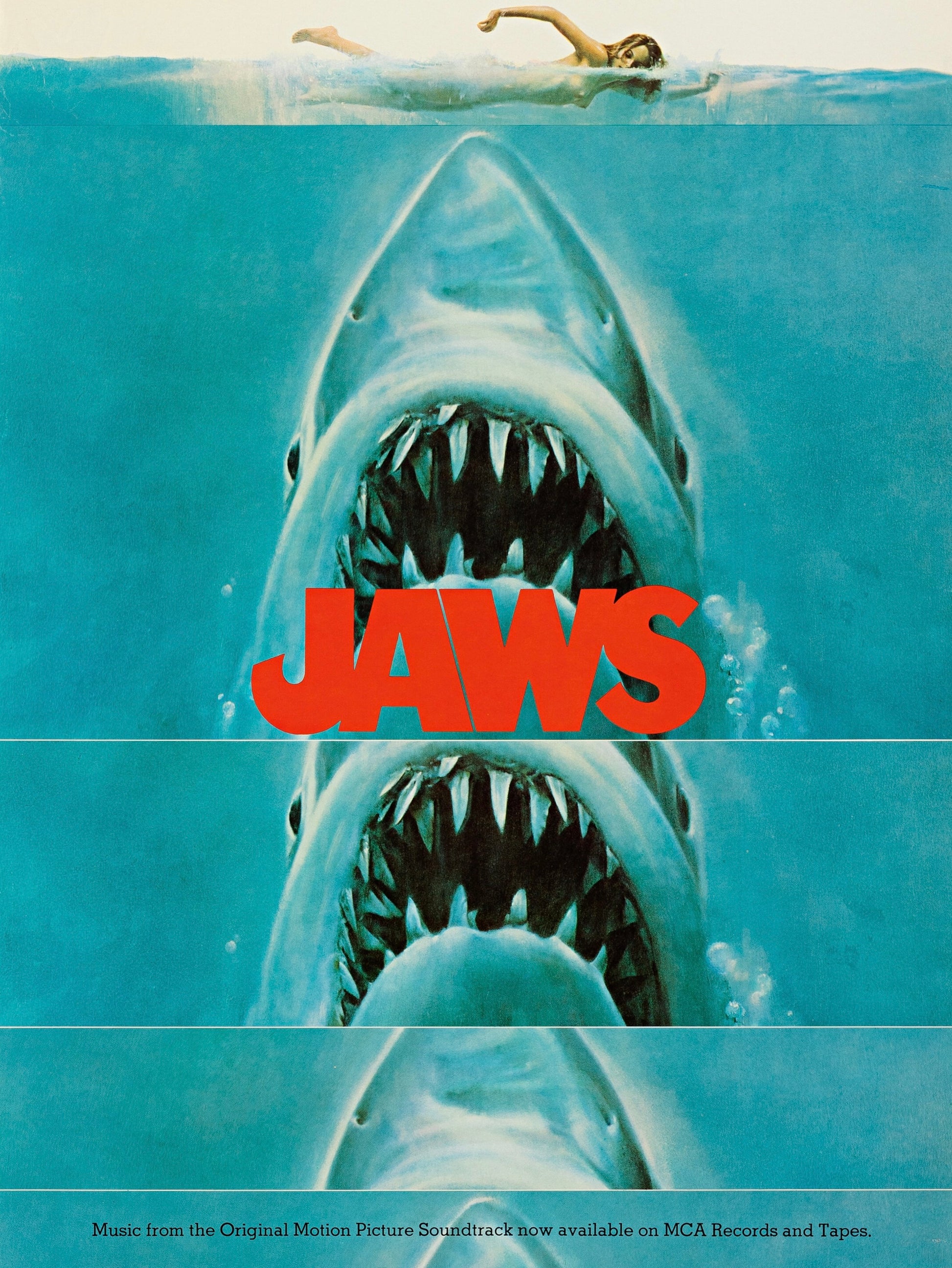 JAWS – FILM STEVEN SPIELBERG (1975) – ROY SCHEIDER – ROBERT SHAW – AFFICHE CINÉMA THRILLER HORREUR – REPRODUCTION – POSTER HUB STUDIO – HQ -