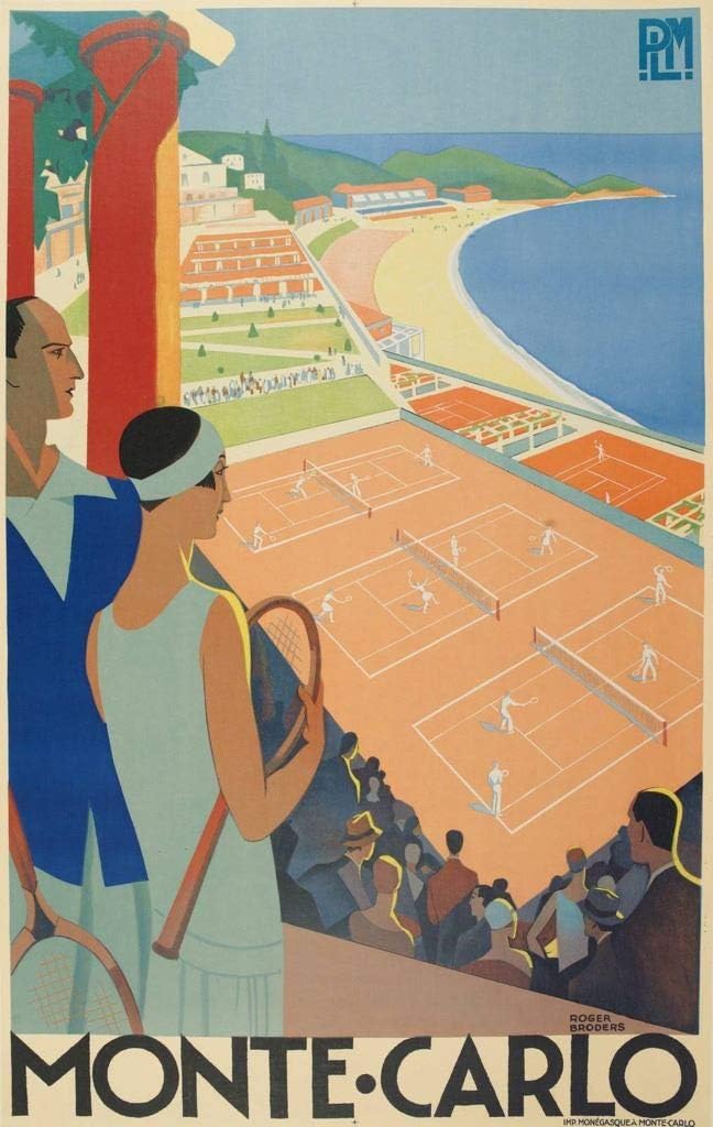 MONTE-CARLO – AFFICHE VINTAGE TENNIS CÔTE D’AZUR – ART DÉCO VOYAGE – REPRODUCTION – POSTER HUB STUDIO – HQ -