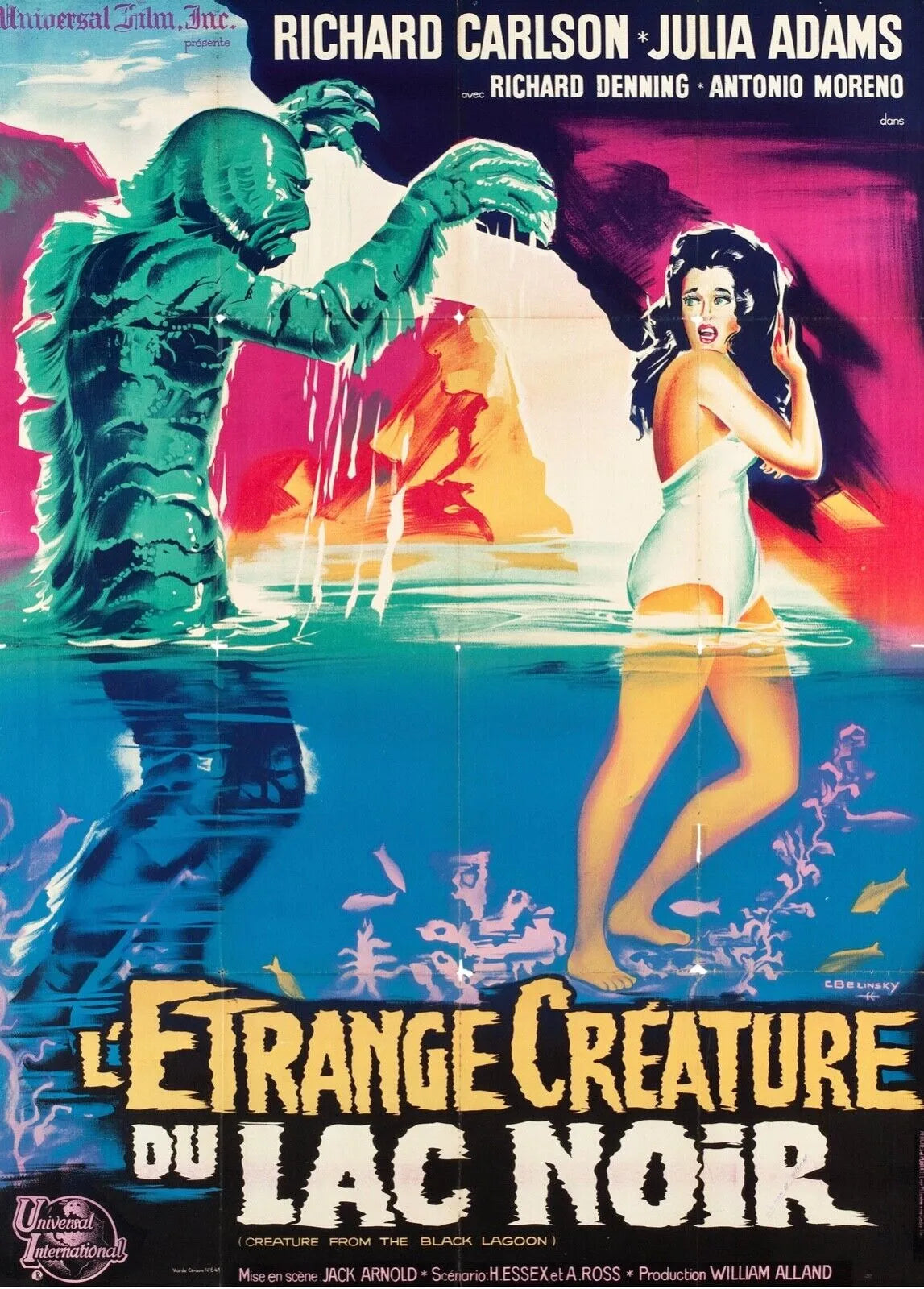 CREATURE FROM THE BLACK LAGOON, 1954, REPRODUCTION OF VINTAGE MOVIE POSTER, HQ -