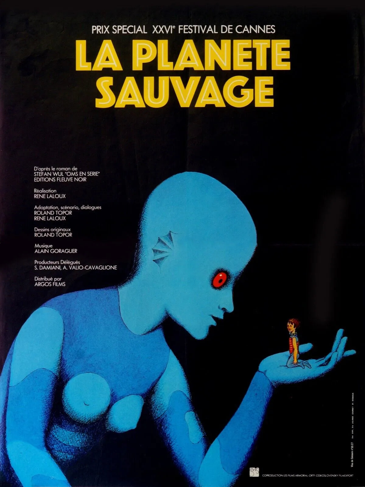 EL PLANETA SALVAJE, RENÉ LALOUX, 1973, FESTIVAL DE CINE DE CANNES, Reproducción de cartel de cine VINTAGE, HQ -