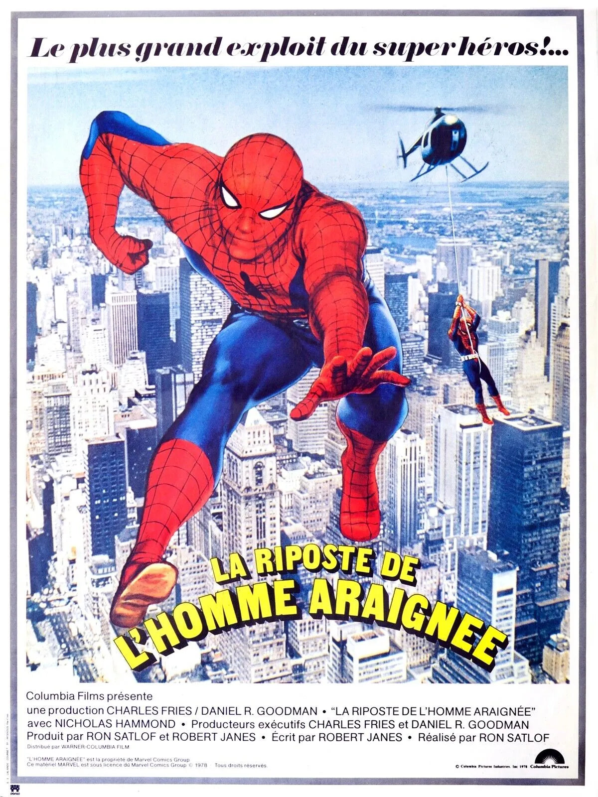 SPIDER-MAN CONTRAATACA, NICHOLAS HAMMOND, 1978, REPRODUCCIÓN DE PÓSTER DE CINE VINTAGE, ALTA CALIDAD Spider-Man Contraataca, "Spiderman" Póster de cine reproducción y lienzo ALTA CALIDAD -