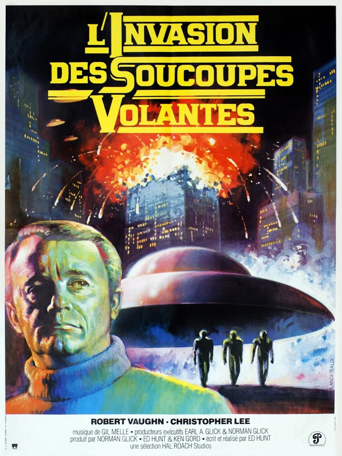LA INVASIÓN DE LOS PLATILLOS VOLADORES, CHRISTOPHER LEE, 1977, REPRODUCCIÓN DE CARTEL DE PELÍCULA, VINTAGE, HQ -