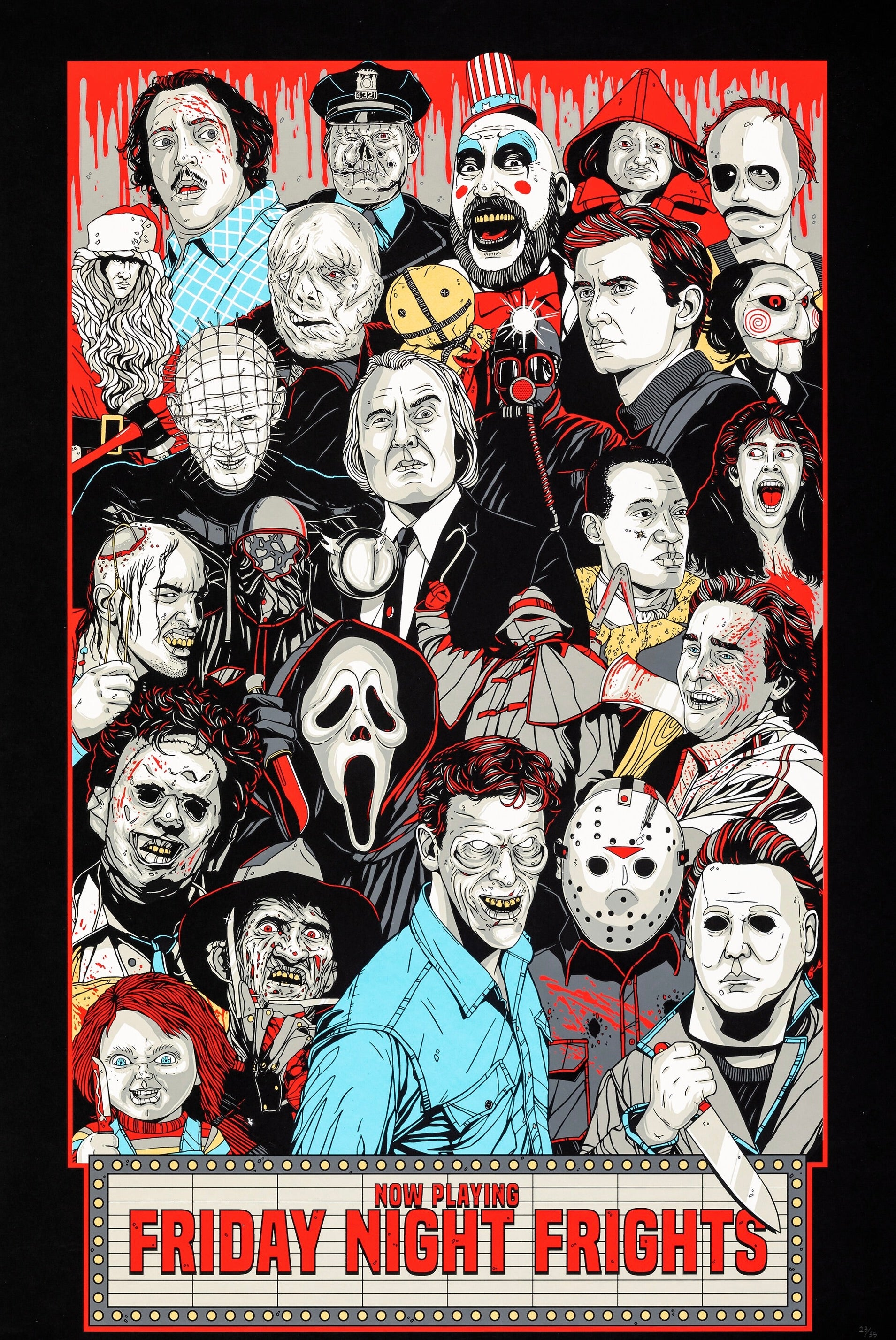 FRIDAY NIGHT FRIGHTS – AFFICHE CINÉMA HORREUR CULTES – PERSONNAGES ICONIQUES – REPRODUCTION – POSTER HUB STUDIO – HQ -