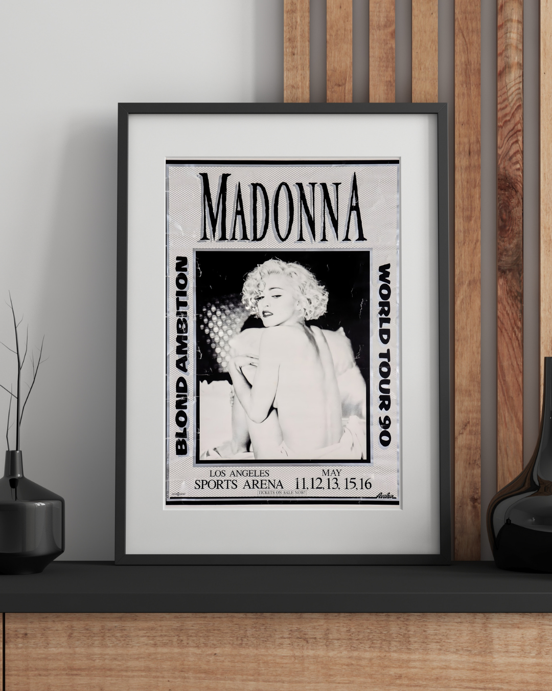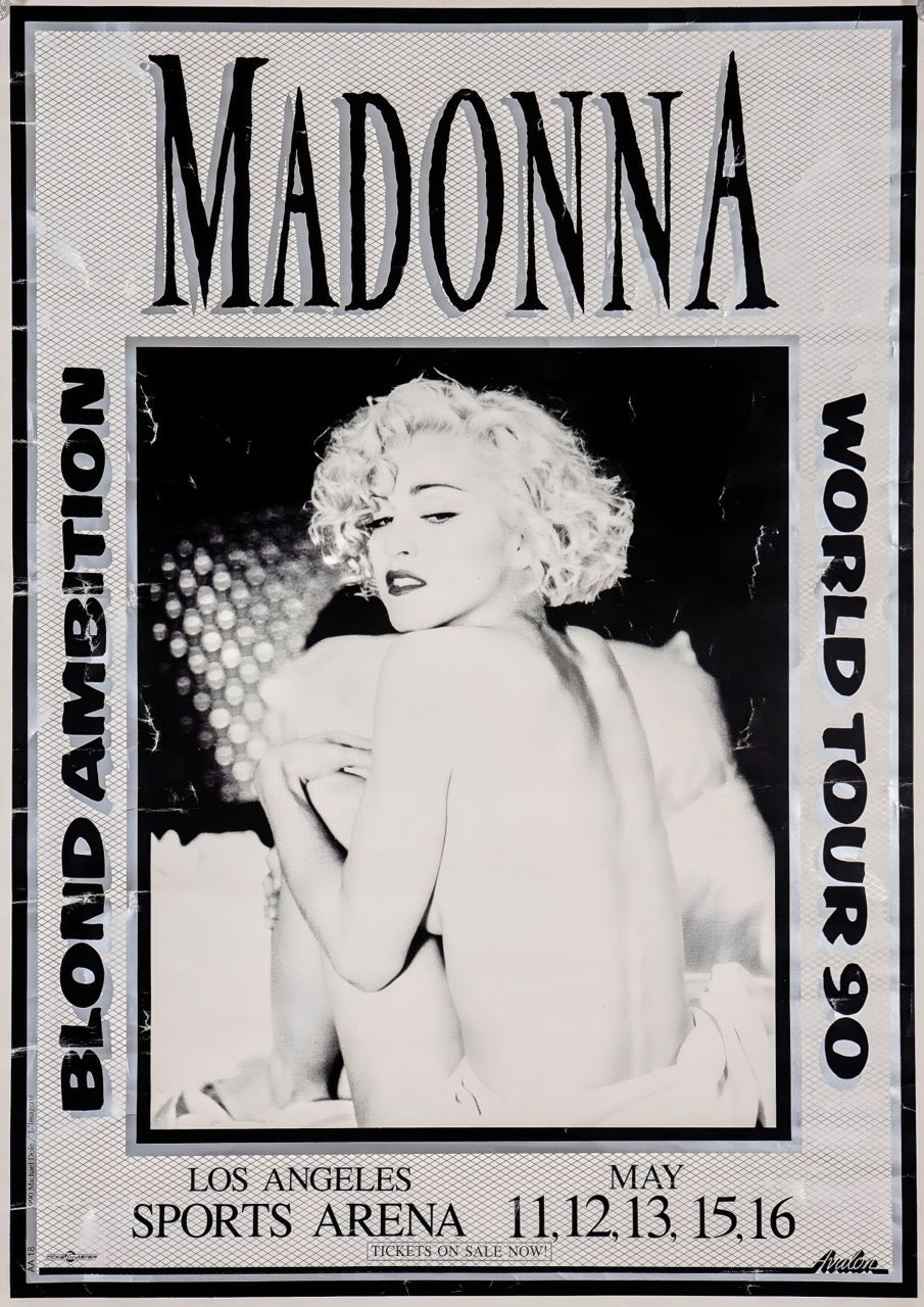 AFFICHE CONCERT MADONNA – BLOND AMBITION WORLD TOUR 90, LOS ANGELES SPORTS ARENA, MAI 1990, REPRODUCTION VINTAGE HQ -
