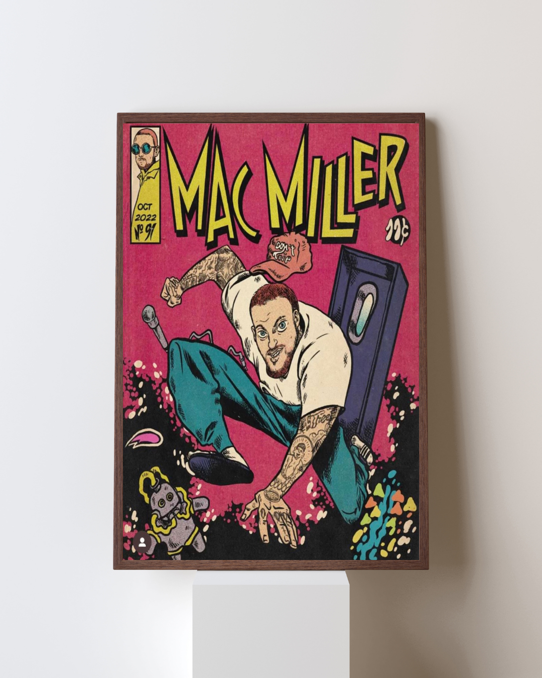 AFFICHE MAC MILLER – ILLUSTRATION STYLE COMIC BOOK, OCTOBRE 2022, N°97, REPRODUCTION VINTAGE HQ