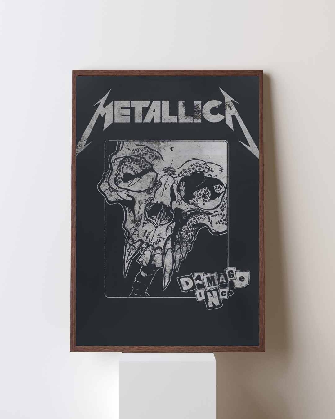 POSTER METALLICA DAMAGE INC CRÂNE GRAPHISME NOIR ET BLANC ROCK METAL VINTAGE -