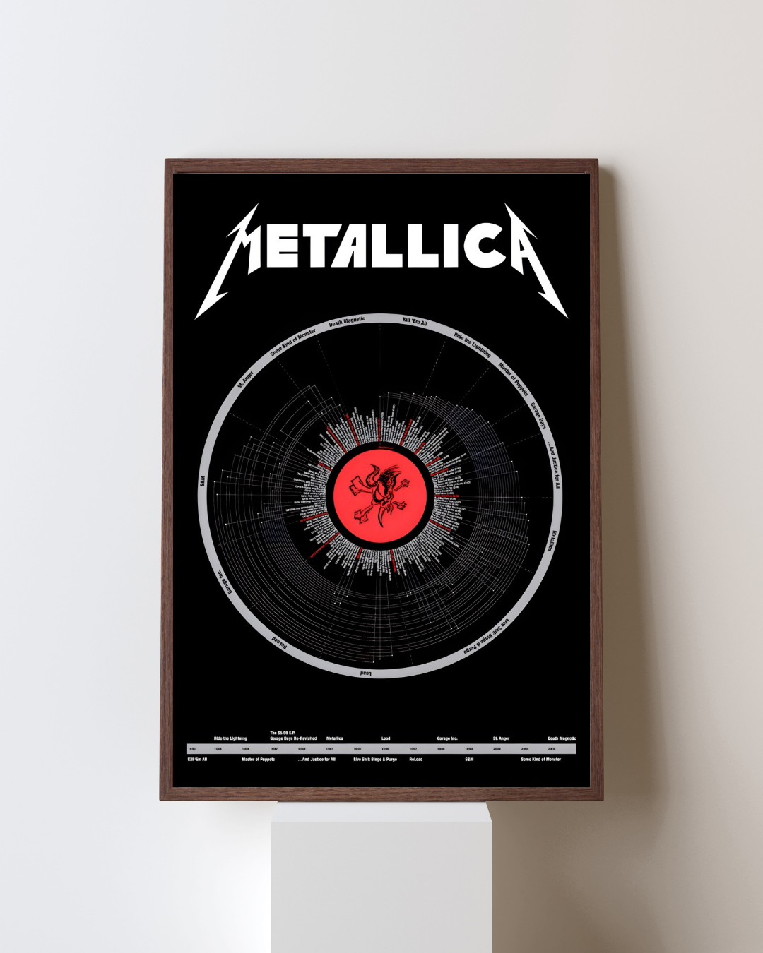 AFFICHE DU GROUPE METALLICA – DISCOGRAPHIE – HEAVY METAL – DESIGN GRAPHIQUE – REPRODUCTION -